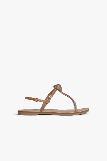 Diferencial: tira sobre o pé adornada com uma fivela estilizada