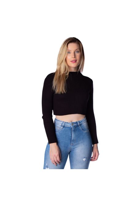 Oliveira MalhasBlusa Cropped Feminina Oliveira Malhas em Tricot Preto