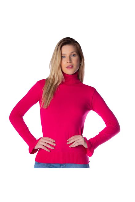 Oliveira MalhasBlusa Feminina Oliveira Malhas em Tricot com Gola Alta e Babados Pink