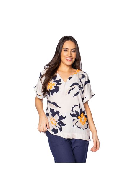 AverzzyBlusa Feminina Averzzy Plus Size Estampada com Dobra na Manga Marinho