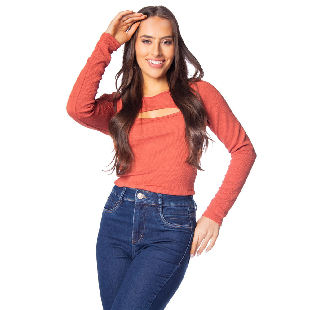 Blusa Cropped Feminina Feliny com Recorte Telha