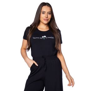 Blusa Feminina Rechsul Manga Curta com Escrita Preto