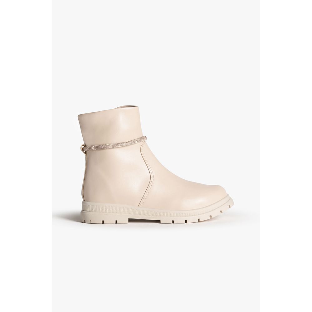 A Bota Infantil Tratorada Cano Curto Mundial Guinevere é uma peça charmosa e cheia de estilo para os pequenos. Feita em material sintético com acabamento envernizado, apresenta um detalhe encantador em tira com strass. Seu solado tratorado e bico redondo completam o visual moderno e confortável deste calçado.