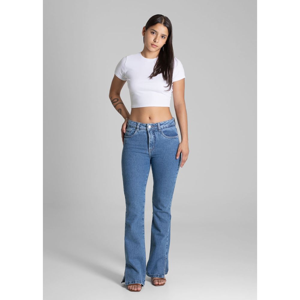 A modelagem boot cut tem o caimento ajustado nas pernas e levemente ampla barra. Cintura media Fechamento com botão e zíper Bolsos frontais e posteriores funcionais Barra fenda lateral Modelagem: boot cut Tecido: Jeans Tipo de lavagem: Azul Cor: Azul médio