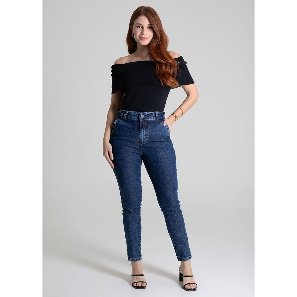 Calça cigarrete confeccionada em jeans. A modelagem é ajustada com o comprimento até o tornozelo. Cintura média Fechamento através de botão e zíper A barra tem acabamento simples Tecido: Jeans Tipo de Lavagem: Azul Cor: Azul escuro