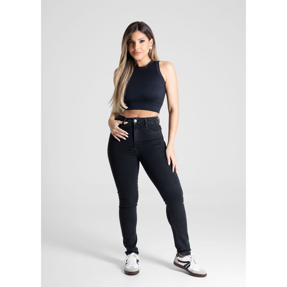 Calça sarja feminina. Modelo cigarrete com corte push up, sendo ajustado ao corpo até a altura do tornozelo, com tecido que valoriza seu bumbum. Cintura média Fechamento através de um botão e zíper Bolsos frontais falsos e posteriores funcionais Barra simples Tipo de Lavagem: Color Cor: Preto