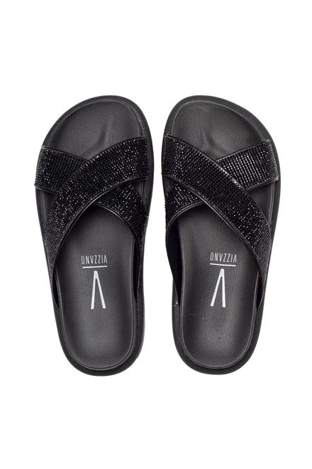 VizzanoChinelo Feminino Vizzano Tiras Cruzadas com Brilho Preto