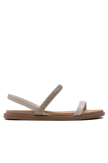 MolecaSandália Rasteira Feminina Moleca com Tira de Brilhos Creme