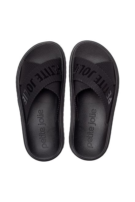 VizzanoChinelo Slide Feminino Vizzano Flatform com Tiras Brilhosas Preto