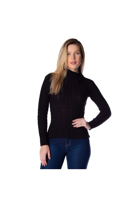 Oliveira MalhasBlusa Feminina Oliveira Malhas em Tricot com Detalhe na Gola Preto