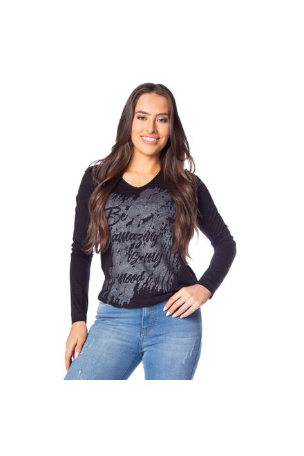 RovitexBlusa Feminina Rovitex Estampa Metalizada Preto