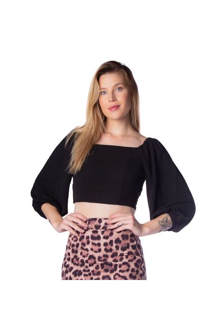 Nega RioBlusa Cropped Feminina Nega Rio com Mangas Bufantes Preto