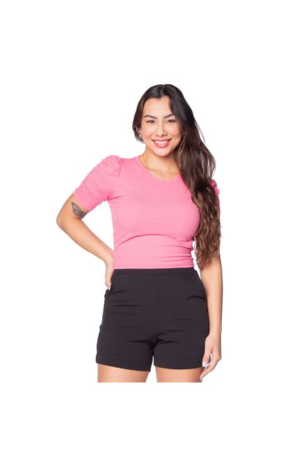 INFINITTO LADYBlusa Cropped Feminina Infinitto Lady com Manga Franzida Rosa