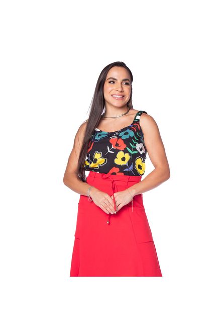 AverzzyRegata Feminina Averzzy Estampa Flores Preto/vermelho