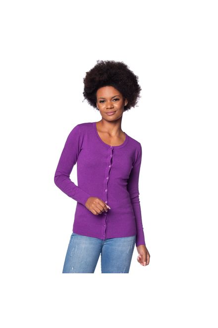 FacinelliCasaco Feminino Facinelli Tricot Botões Roxo