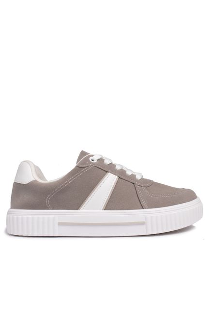 VizzanoTênis Feminino Vizzano de Camurça com Recortes Cinza/Branco