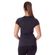A camiseta é confeccionada em malha encorpada de poliamida e elastano, com um caimento leve e confortável. Possui modelagem regular, com mangas de cava posta e gola redonda.