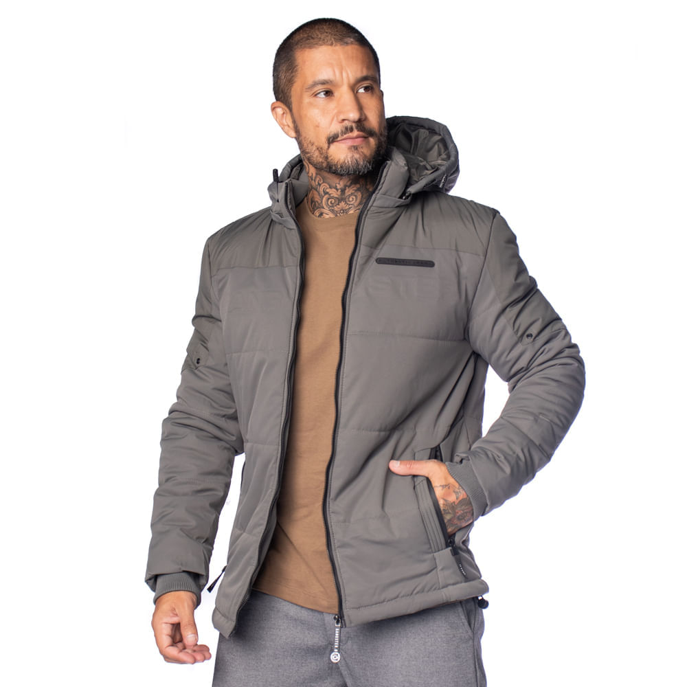 Jaqueta Masculina Gangster Puffer Capuz Removível Cinza