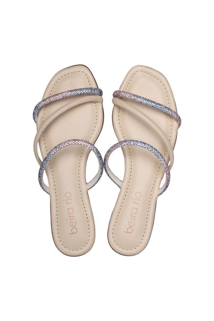 Beira RioRasteira Feminina Beira Rio Tiras com Strass Creme
