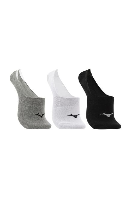 MizunoKit c/ 3 Meias Unissex Mizuno Basic Invisível 33/38 Branco/preto/cinza