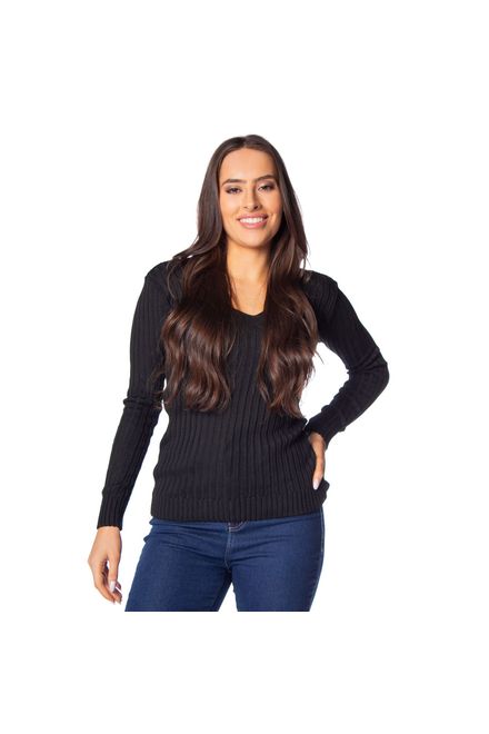 Oliveira MalhasBlusa Feminina Oliveira Malhas em Tricot com Gola V Preto
