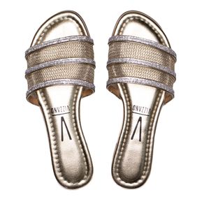 Rasteira Feminina Vizzano Metalizada em Tela Dourado