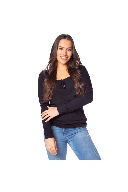 RovitexBlusa Feminina Rovitex Endless Decote com Cordão Preto