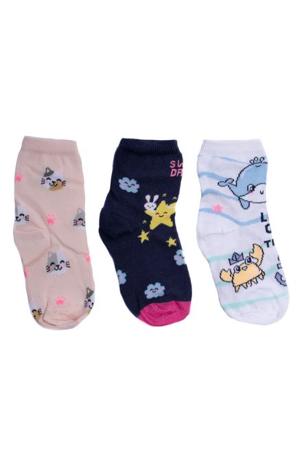 SeleneKit com 3 Pares de Meias Infantis Selene Cano Médio Salmão/Branco/Azul