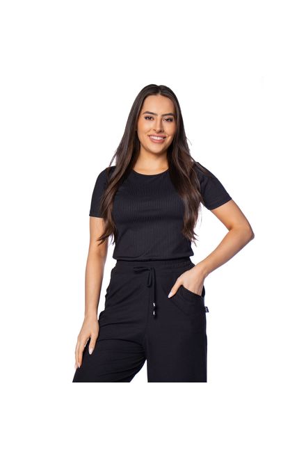 RECHSULBlusa Feminina Rechsul Básica Canelada Manga Curta Preto
