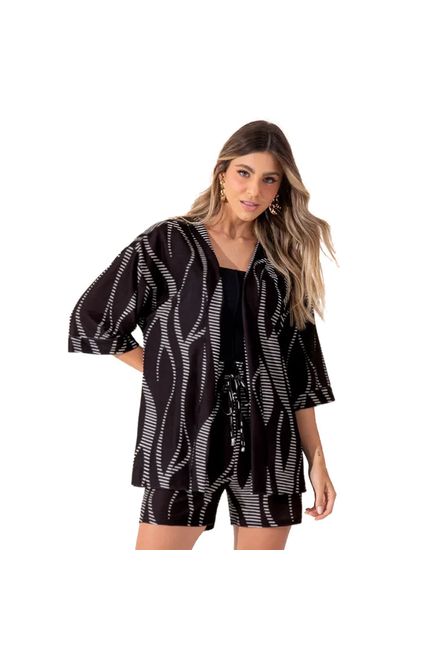 Olho FatalKimono Feminino Olho Fatal Estampado Preto/branco