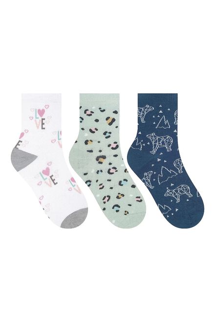 SeleneKit 3 Pares de Meias Infantis Selene Cano Médio Branco/rosa/marinho