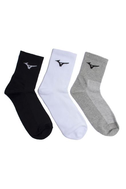 MizunoKit 3 Pares Meias Esportivas Mizuno Cano Médio Cinza/Branco/Preto