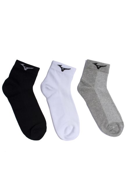 MizunoKit 3 Pares Meias Esportivas Mizuno Cano Curto Cinza/Branco/Preto