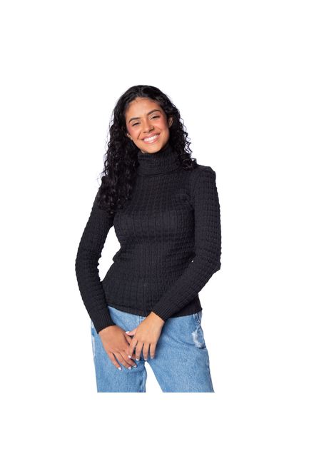 DarluamBlusa Feminina Darluam Tricot Trançado Gola Gola Alta Preto