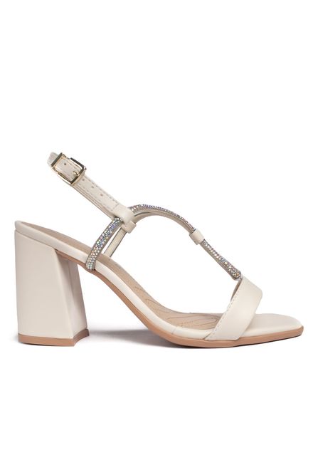 RamarimSandália Feminina Ramarim Napa Salto Bloco com Pedrarias Off White