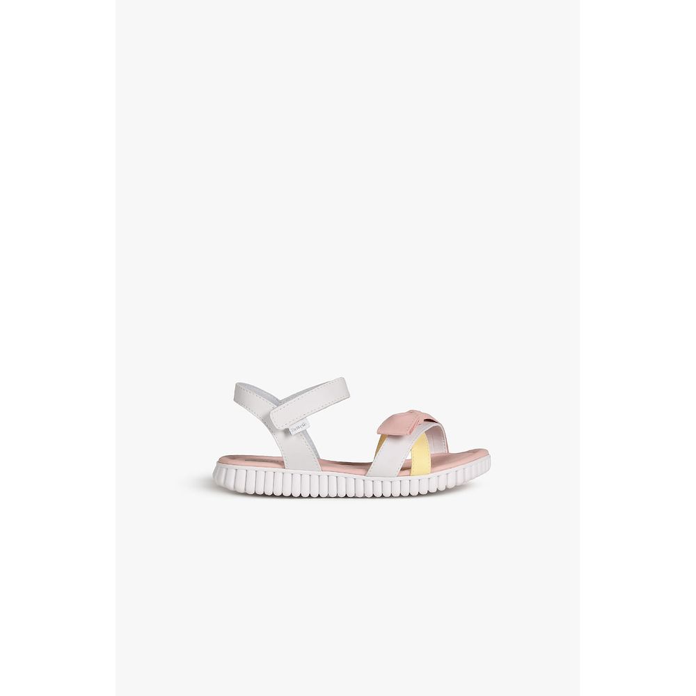 O cabedal é formado por tiras entrelaçadas, que garantem um visual moderno e delicado. O ajuste em velcro facilita o calce, proporcionando maior autonomia às crianças e praticidade no dia a dia.