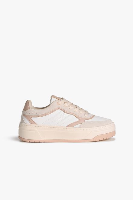 O tênis é produzido em napa com cabedal com textura matelassê, forro em tecido e espuma extra no calcanhar.