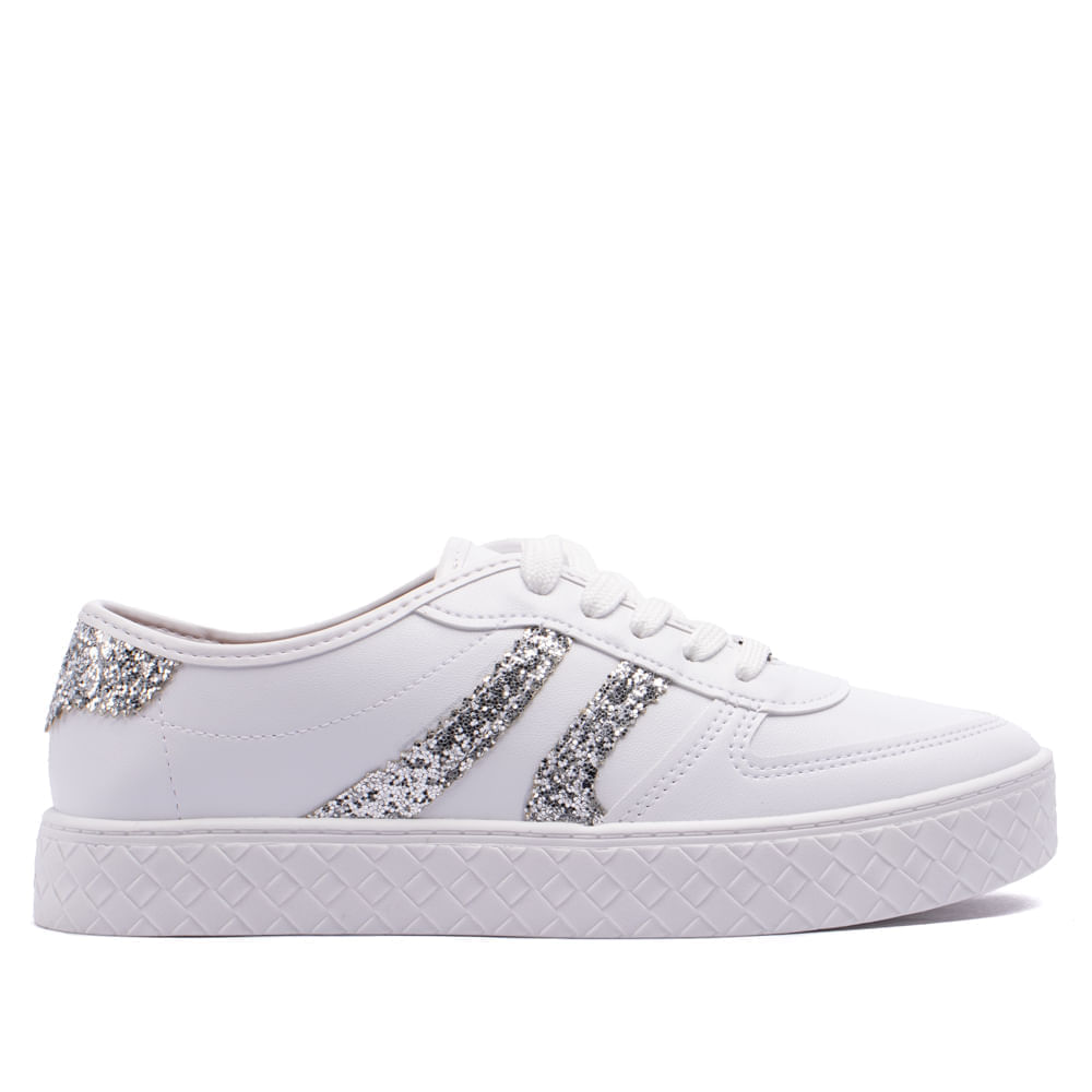 Tênis Feminino Moleca com Detalhes em Glitter Branco/prata