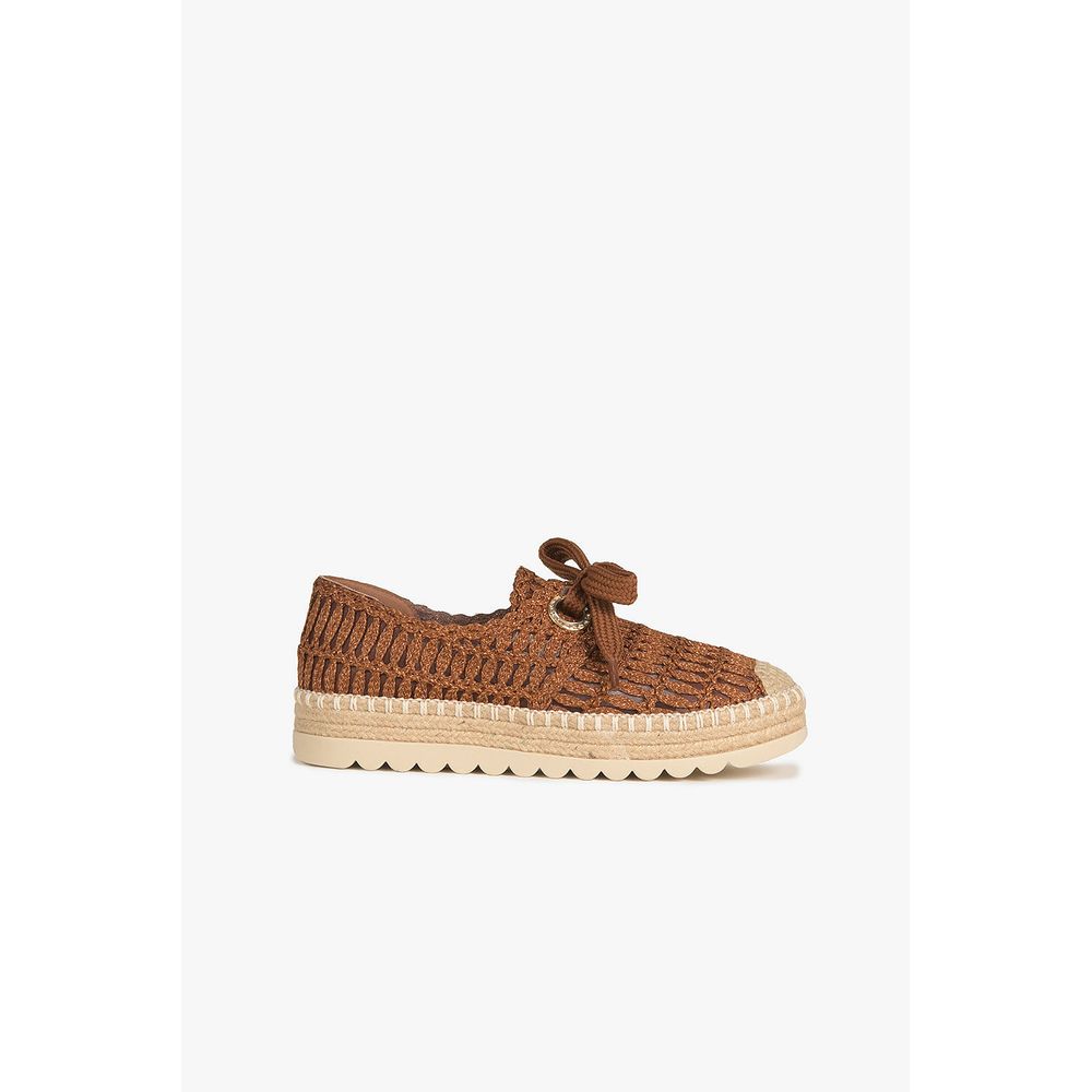 O Tênis Feminino Plataforma Mundial Elora combina charme artesanal e conforto. O cabedal é confeccionado em material têxtil com acabamento em crochê de fios cintilantes, criando um visual rústico e elegante. Possui cadarço robusto que garante um ajuste firme e estiloso. O solado em plataforma baixa conta com detalhes em corda trançada e base emborrachada com leve ondulação, proporcionando segurança ao caminhar. Ideal para quem busca um calçado leve, fresco e com personalidade para os dias mais quentes.