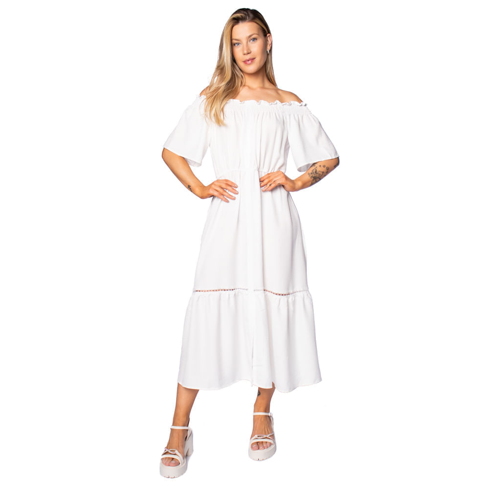 Vestido Midi Feminino Facinelli Ombro a Ombro Branco